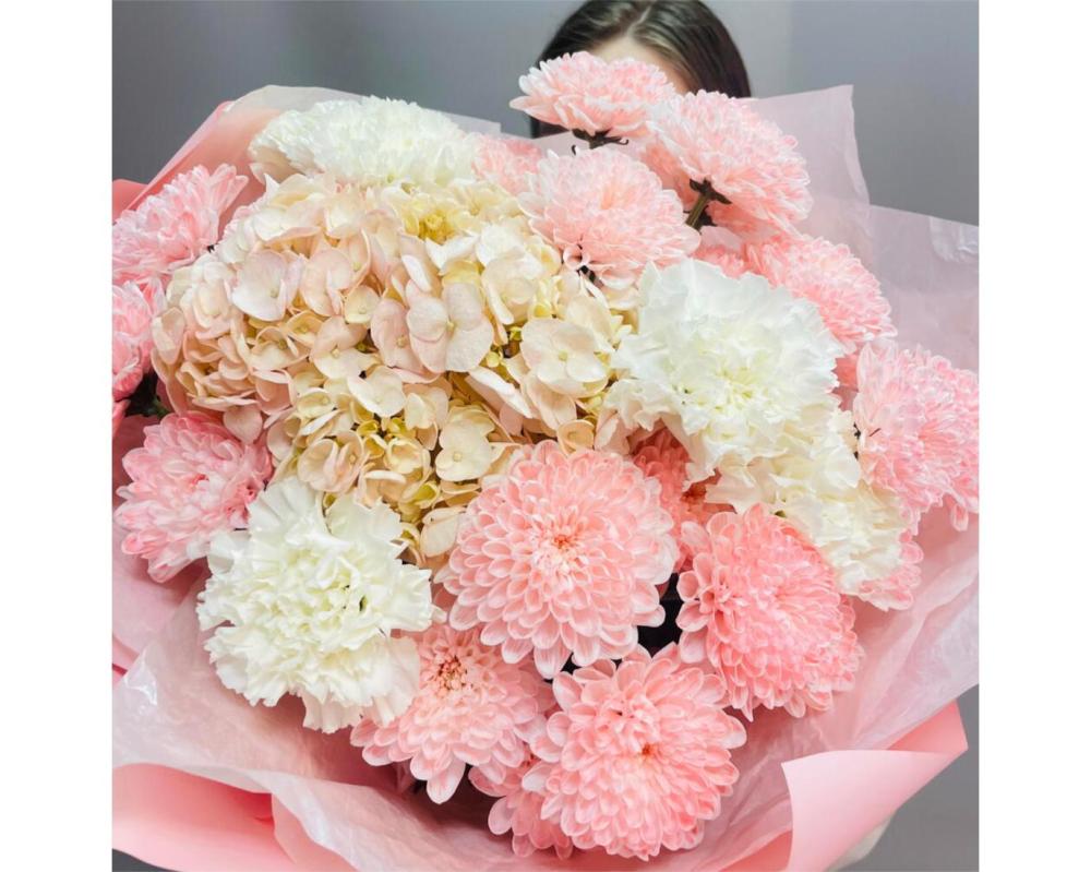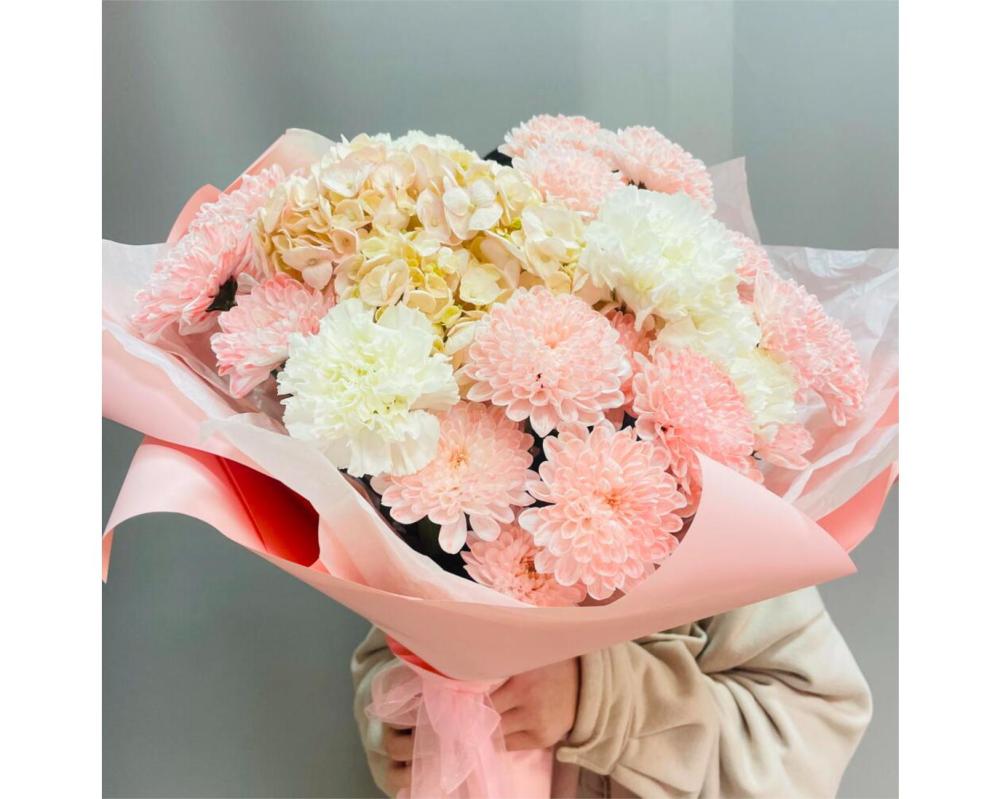 Букет «Для любимой» с гортензией, хризантемой и ароматным диантусом