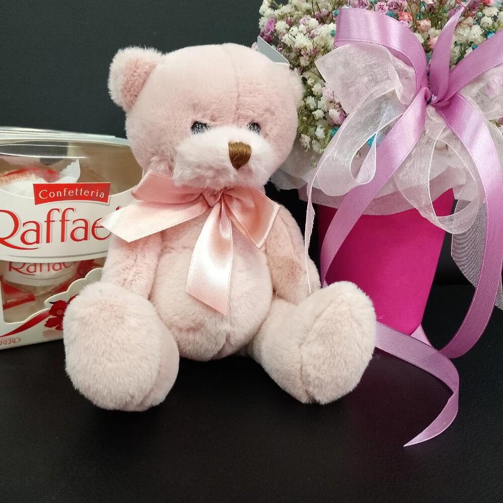 Подарочный набор из конфет, мягкой игрушки и стаканчик с радужной гипсофилой