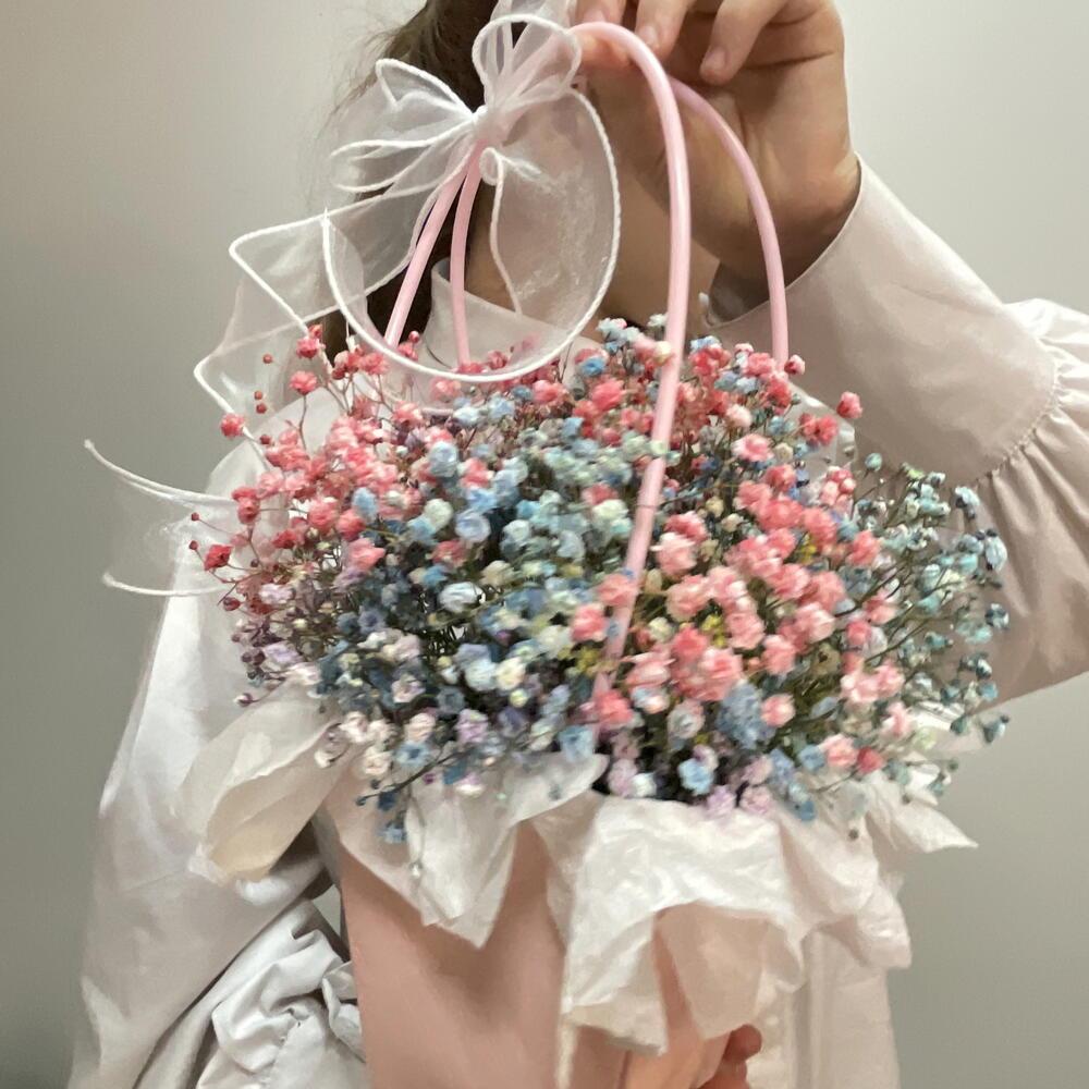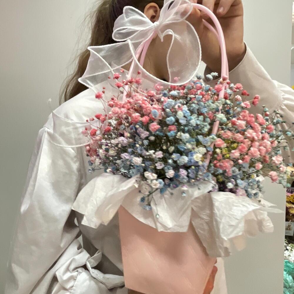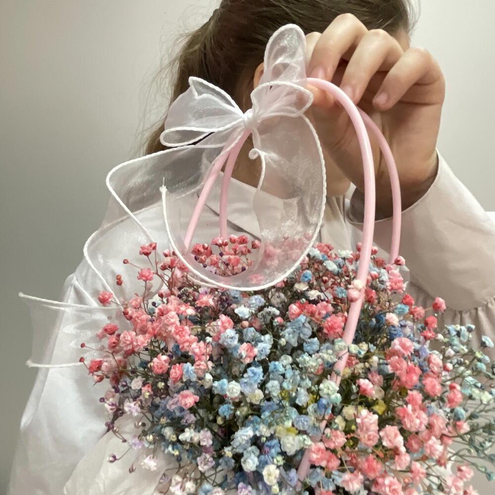 Акция!!!Композиция из радужной (цветной) гипсофилы в сумочке