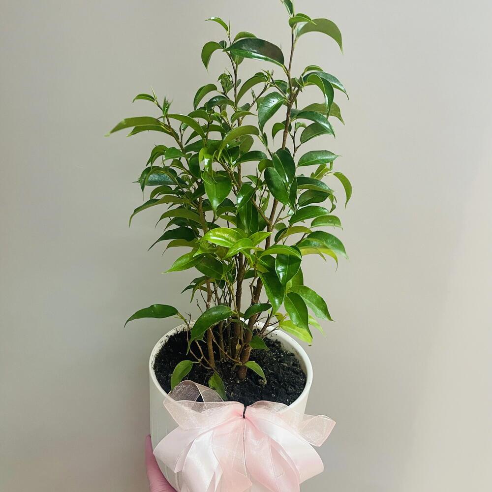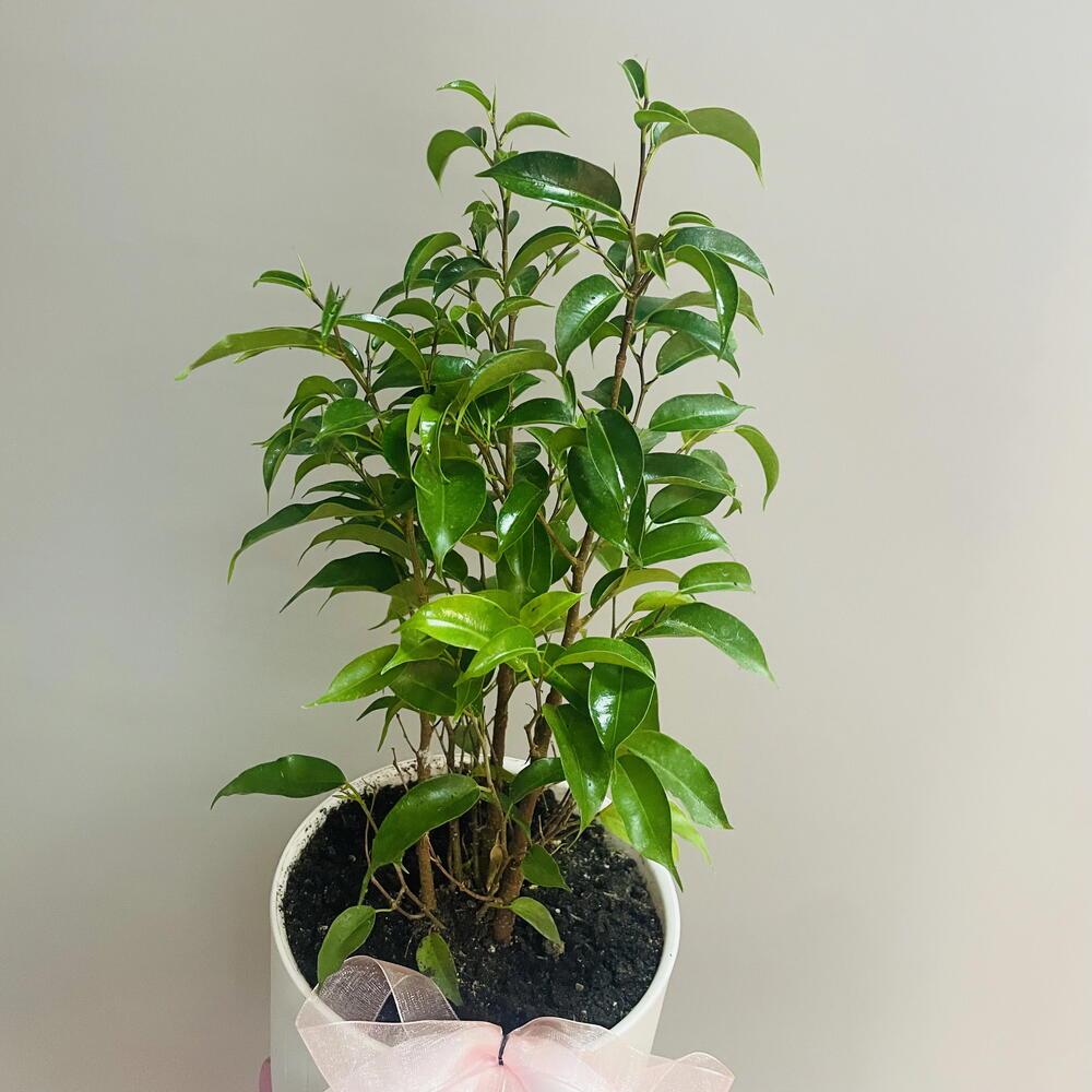 Фикус Бенджамен комнатный с мелкой листвой (пересажен в горшок с автополивом)