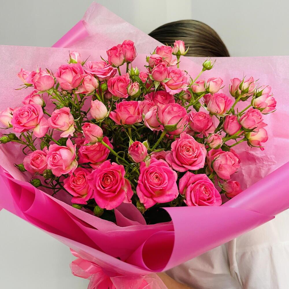 Букет с мелкоцветковой кустовой розовой розой по низкой цене