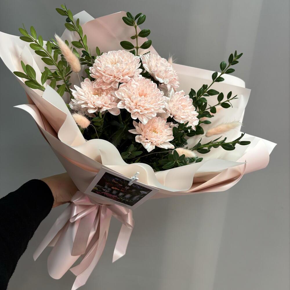 Букет с хризантемой к праздникам 14 февраля и 8 марта