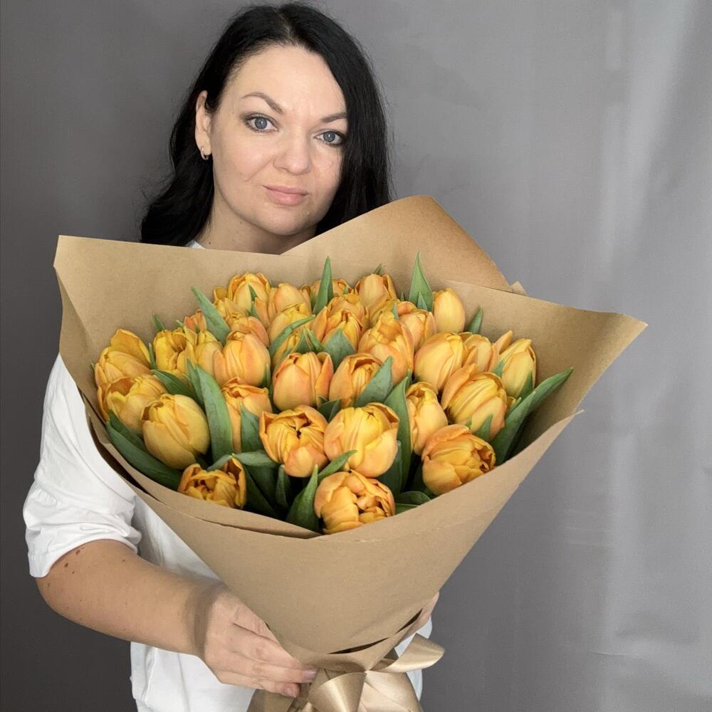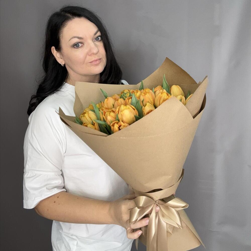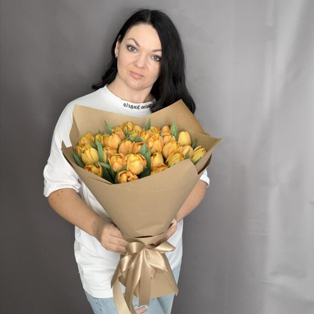 Тюльпаны пионовидные желто-оранжевые в Крафт упаковке